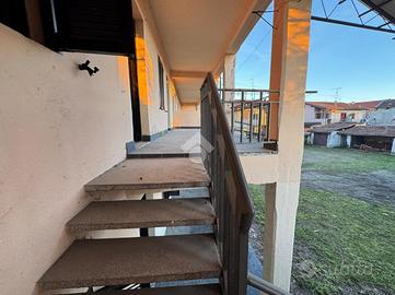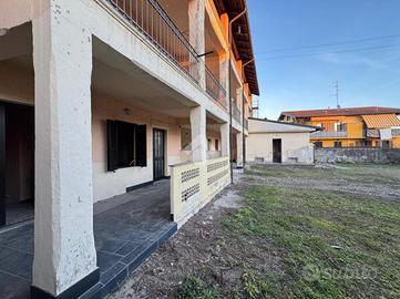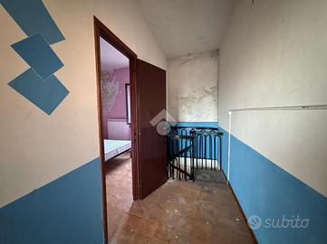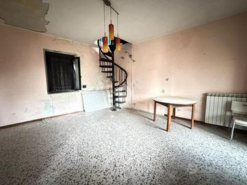 BELLINZAGO NOVARESE: In zona centrale porzione di casa bifamiliare disposta su tre livelli, da ristrutturare. Al piano di terra è presente un soggiorno e una cucina adiacente. Al primo piano, accessibile sia tramite scala a chiocciola interna, sia tramite scala esterna, sono presenti due camere da letto, un bagno, e un terrazzo esterno. Infine al secondo piano mansardato, sono presenti due locali allo stato grezzo, con possibilità di renderli abitabili. Concludono la proprietà un giardino esterno di c.a. 400 mq, un box auto, un cassero è un locale catinato sottostante. Il tetto è stato completamento ristrutturato circa quattro anni fa.