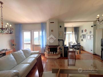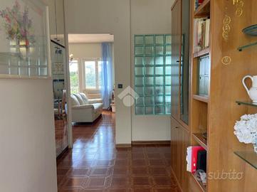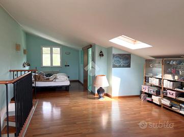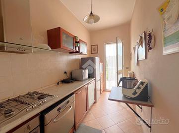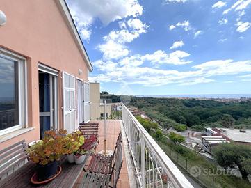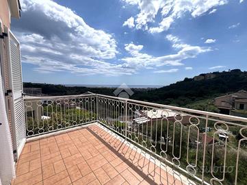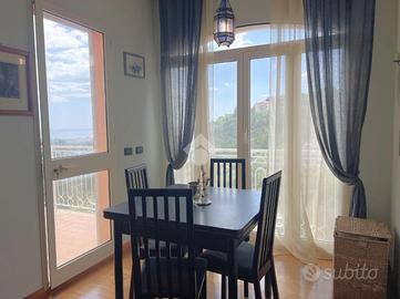 La villa si sviluppa su due livelli, ciascuno con un'abitazione autonoma. Il primo appartamento si trova al piano superiore ed è composto da un soggiorno ampio e luminoso, perfetto per la vita quotidiana, affiancato da una cucina separata e da una camera matrimoniale. Il bagno è finestrato, comodo e ben organizzato negli spazi. A impreziosire questo livello, un grande terrazzo vivibile dal quale si gode di una vista meravigliosa sul mare ma anche panoramica che valorizza l'intero contesto in modo concreto e piacevole. Salendo, si accede al sottotetto, dove si trova un ulteriore ambiente, con secondo servizio igienico finestrato dotato di box doccia, da utilizzare come spazio flessibile.