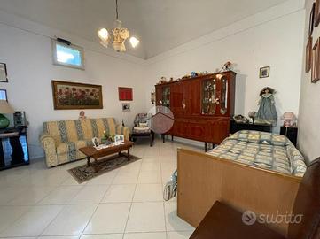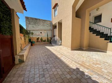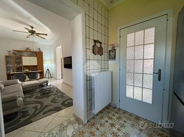 Al piano rialzato abbiamo la prima abitazione; all'ingresso veniamo accolti da un ampio disimpegno che ci conduce ai vari ambienti della casa, un ampio salone, camera da letto e cucina abitabile con accesso alla corte esterna.