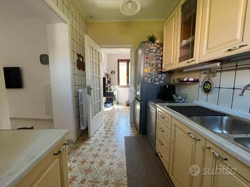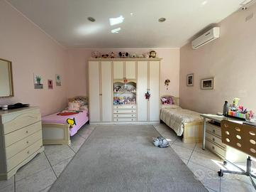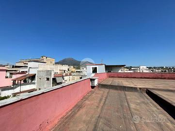 Questa si apre su uno spazioso disimpegno, ben esposto e soleggiato grazie alla vetrata e si collega direttamente con la zona giorno, con il salone e la cucina, il corridoio poi ci conduce alle due spaziose camere da letto ed il ripostiglio. Completa il tutto l'accesso diretto al lastrico solare dove si può ammirare e godere di un panorama a 360°.