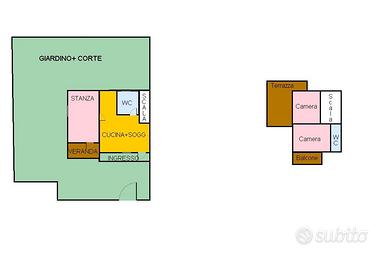 In contesto tranquillo e riservato, abitazione completa di giardino privato di circa 150mq, con box auto e comodi spazi esterni.