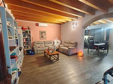 Soffitti con travi in legno lamellare a vista in tutti gli ambienti, Velux elettrici nella zona notte, Porte interne in vetro decorato (nella prima unità) e nuove nel 2022 (nella seconda), Impianto di climatizzazione in ogni ambiente, pavimentazioni di pregio: ceramica e PVC laminato di prima scelta nella zona giorno e nei bagni, parquet laminato nella zona notte, Infissi in legno con doppi vetri e persiane in legno, Portoncini blindati, Impianto d'allarme completo (perimetrale e volumetrico), Impianti idraulici ed elettrici a norma e certificati.