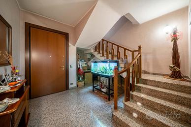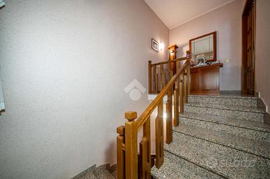 Al piano terra: ingresso, soggiorno con angolo cottura, camera matrimoniale, anti bagno e bagno, cantina. Al piano 1°: soggiorno con camino e terrazzo servito da un angolo barbecue, cucina abitabile, disimpegno notte, 3 camere da letto, bagno con doccia e sfogo su un balcone ed ulteriore bagno con vasca.