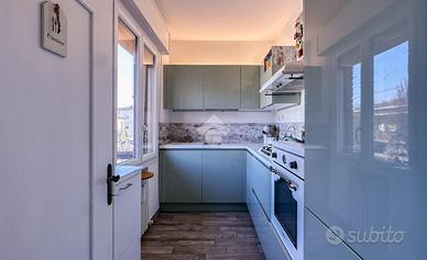 L'appartamento al 1° piano è stato totalmente ristrutturato nell'anno 2015, ad eccezione delle porte interne e caldaia. E' presente l'impianto dell'aria condizionata. Sviluppa una zona giorno composta di ampio ingresso che disimpegna il soggiorno e il tinello, luminosi ambienti che usufruiscono di accesso al balcone, e di un pratico cucinotto arredato. La zona notte comprende due camere da letto matrimoniali, una spaziosa camera da letto singola, e un bagno dotato di doccia, oltre un piccolo ma pratico ripostiglio.