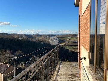 Nel centro di Castell'Alfero, in posizione comoda a tutti i servizi ma al tempo stesso riservata, proponiamo in vendita casa semi indipendente di ampia metratura, caratterizzata da splendida vista aperta sulle colline del Monferrato e sulle catene montuose circostanti. La proprietà, edificata negli anni '70, si sviluppa su più livelli ed è impreziosita da cortile privato interno, ideale per chi desidera uno spazio esterno vivibile in totale privacy. L'abitazione è composta al piano terra da diversi locali accessori tra cui cantina, magazzini e sgomberi, ambienti versatili che si prestano a molteplici utilizzi: taverna, zona hobby, laboratorio o spazi di servizio. Sempre al piano terreno si apre il cortile privato, un valore aggiunto raro nel centro del paese, all'interno del quale sono presenti ulteriori locali di deposito, perfetti da adibire a box auto, ricovero attrezzi o ulteriori spazi di rimessaggio. Il piano primo ospita parte della zona abitativa con diverse camere , bagno, locali accessori e terrazzo panoramico con affaccio aperto sul paesaggio collinare, offrendo scorci suggestivi e grande luminosità agli ambienti. Il piano secondo completa la proprietà con soggiorno, cucina, tre camere e servizio, oltre a un ulteriore terrazzo. Gli spazi risultano ben distribuiti, luminosi e facilmente personalizzabili secondo le proprie esigenze abitative. Un elemento di particolare interesse è la presenza di ingressi separati per ciascun piano, caratteristica che offre la concreta possibilità di realizzare due appartamenti indipendenti, soluzione ideale per due nuclei familiari, per chi desidera un'abitazione con unità a reddito oppure per chi necessita di uno spazio dedicato a studio professionale o attività ricettiva. Grazie alla generosa metratura, alla flessibilità degli ambienti e alla posizione centrale con vista panoramica, questa proprietà rappresenta una soluzione di grande potenziale, perfetta per famiglie numerose o per chi è alla ricerca di una casa ca