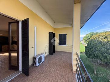 La villa strutturata su 2 livelli è così composta: al piano terra è presente un ampio appartamento quadrilocale di 110 mq caratterizzato da un ampio soggiorno openspace che affaccia direttamente sul cortile, da 3 camere da letto matrimoniali, bagno che box doccia e portico privato.