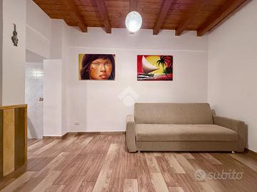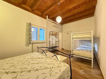 A 350 metri dalla spiaggia, proponiamo in vendita un appartamento sito al primo piano di una porzione di bifamiliare ed una dependance sita al piano terra.