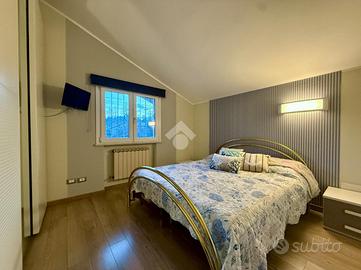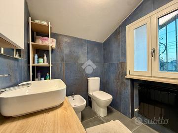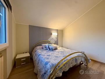 Questa soluzione abitativa, offre una superficie totale di circa 130 mq. Entrambi hanno il proprio ingresso indipendente. L'immobile sito al primo piano è accessibile da una scala esterna, che ci porta all'ampio terrazzo di proprietà ed entrando in casa ci accoglie un ingresso che fa spazio alla zona giorno dove troviamo il soggiorno, la cucina abitabile, due camere da letto, un ripostiglio ed il bagno.