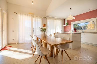 Cesena: zona Rio Marano, immersa in un parco di 6.500mq, a pochi minuti dal centro città, proponiamo una villa singola con piscina disposta su tre livelli, attualmente predisposti come due unità abitative, ideale per chi cerca privacy e tranquillità. L'ingresso al piano terra ci accoglie con l'ampio soggiorno con cucina a vista ed un bagno di servizio. Salendo le scale si accede al soppalco, attualmente adibito a studio, che affaccia sul soggiorno e consente l'affaccio sul giardino. La zona notte, separata dalla zona giorno da pochi gradini, comprende tre camere matrimoniali, di cui due con bagno in camera, ed un ripostiglio. Al piano inferiore è presente un trilocale, dotato di un proprio ingresso esterno, con un soggiorno, cucina, una camera matrimoniale, una camera singola, un bagno ed uno ripostiglio predisposto per diventare il secondo bagno. Il piano interrato offre una spaziosa lavanderia, una sala hobby e un ambiente attualmente utilizzato come sala per registrazioni. Completano la proprietà un ampio giardino ben curato, un portico ideale per pranzi all'aperto ed una piscina privata dotata di zona spogliatoi, bagni e doccia, perfetta per momenti di relax e svago. Sono presenti diverse dotazioni tecniche come: - Impianto riscaldamento a pavimento - Cappotto termico in diatonite - Finestre in tripla battuta - Scuroni motorizzati - Predisposizione alla diffusione musica - Impianto allarme - Impianto elettrico in domotica - Impianti fotovoltaici: 6,6kw GSE resa 4.500/anno + 7,2kw con accumulo batterie - Due punti di ricarica auto - Pergolato per quattro posti auto - Ampi solarium pavimentati - Zanzariere su porte a finestra e finestre - Predisposizioni per eventuali spostamenti di locali - Porte ingresso anti infrazione - Impianto piscina con acqua salata - Camini BBQ e pergolati vari Una soluzione esclusiva che unisce la serenità della natura con tecnologie all'avanguardia a due passi dalla città. Per qualsiasi informazione o per fissare un appuntam
