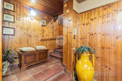 Una comoda scala interna conduce alla taverna, un ambiente ampio e funzionale, con camino, angolo cottura, bagno, zona lavanderia, cantina e collegamento diretto con il garage.