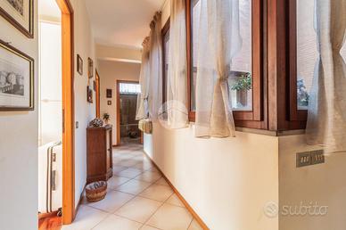La zona notte si trova sul lato opposto, con quattro camere da letto, due matrimoniali e due singole, e due bagni finestrati, uno con vasca e l'altro con doccia. Gli ambienti ruotano attorno a un suggestivo chiostro interno che dona luce e respiro a tutta la casa, rendendola particolarmente gradevole da vivere in ogni stagione.