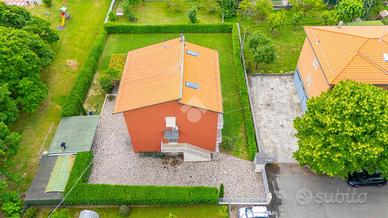 famiglie numerose. Inoltre, per impreziosire l'immobile vi è anche un bilocale mansardato che offre un'atmosfera intima e raccolta, composto da cucina, 1 bagno con doccia un soggiorno e una camera, dotata di aria condizionata. Due terrazzi offrono spazi esterni per il relax, mentre il giardino e il cortile circostante invitano a godere della tranquillità della zona. Completano la proprietà due box auto e posti auto esterni, assicurando praticità e comodità.