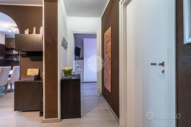 Il primo appartamento è composto da ingresso living su soggiorno con adiacente la cucina abitabile, due camere da letto di cui una dotata di balcone e bagno finestrato e servito di vasca e box doccia.