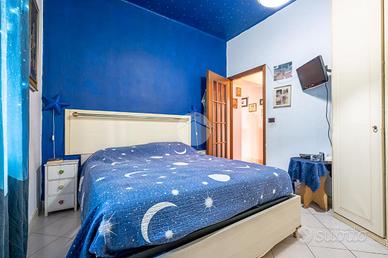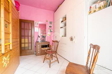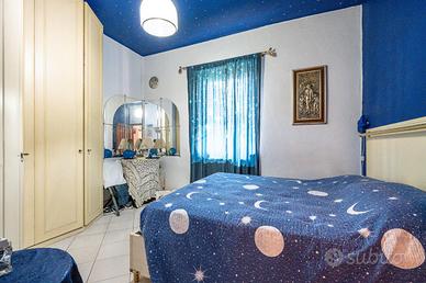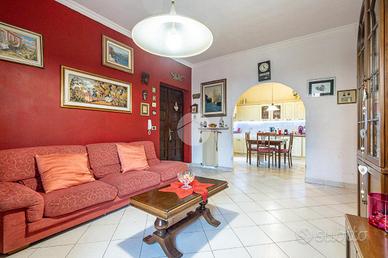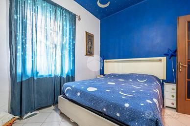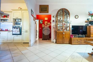 Al piano superiore il secondo appartamento, parizlamente ristrutturato, è composto da ingresso, soggiorno, cucina abitabile, due camere da letto, entrambe dotate di balcone, e bagno finestrato e servito di box doccia. Inoltre sono presenti le zanzariere, le inferriate, il condizionatore e un ampio sottotetto in stato grezzo.