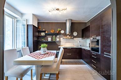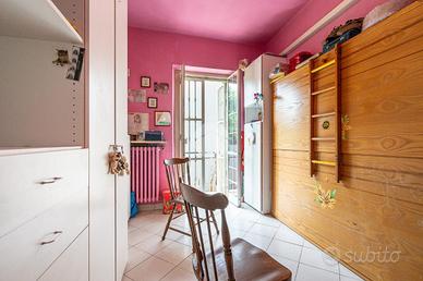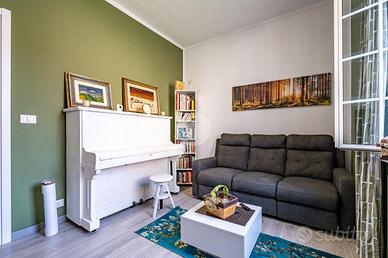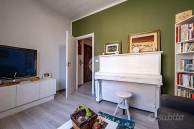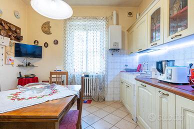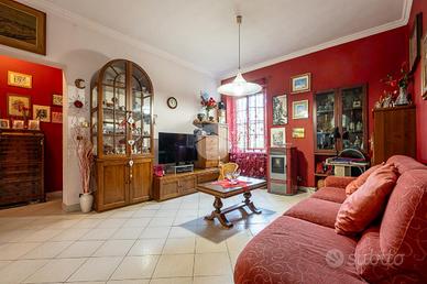 L'intera soluzione, rivista nelle parti comuni, è degli anni '50 ed è costituita da due appartamenti disposti tra piano rialzato e primo piano. È libera su quattro lati ed è presente un'ampia autorimessa di 27 mq.