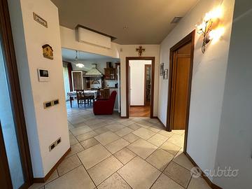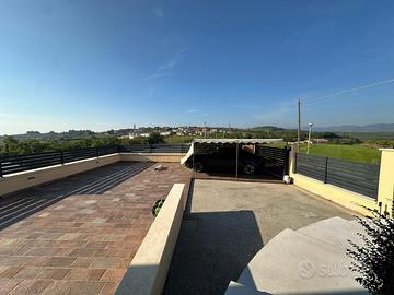 MONTE- ESCLUSIVA IMMOBILIARE - COLOGNOLA AI COLLI- Villa bifamiliare, divisa in verticale, libera su tre lati con accesso pedonale e carraio completamente autonomo, giardino esclusivo, posto auto coperto e terrazza solarium. Mediante la porta blindata si accede all'ampia e luminosa zona giorno suddivisa tra una zona living con camino canalizzato e chiuso con sistema vetro, soggiorno e sala da pranzo con una bellissima vista dello sky view che solo Colognola ai Colli sa offrire. La cucina con l'ampia zona cottura e la porta finestra consente all'accesso sull'esterno, ripostiglio lavanderia di ampie dimensioni. Proseguendo nella zona notte sono presenti le tre camere da letto con bagno finestrato. Ulteriore bagno con anti bagno a disposizione per gli ospiti. Elegante soluzione per chi è alla ricerca della modernità data dall'impianto di riscaldamento a pavimento e della disponibilità della soluzione disposta unicamente su unico livello senza barriere architettoniche. Predisposizione impianto di allarme e di climatizzazione sia nella zona living che nella zona notte.