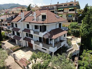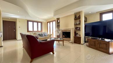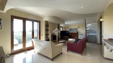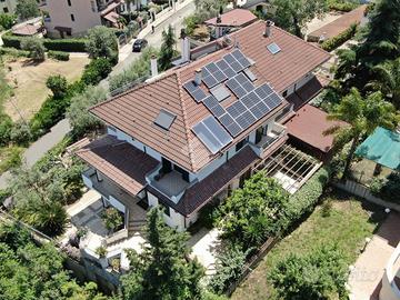 A.U.Rossano - Via D.Criteni(C/da Tramonti). Prestigiosa villa sviluppata su più livelli, completa di soffitta mansardata, cantina con taverna, posto auto coperto e giardino attrezzato. La soluzione, posizionata in una delle zone più ambite della città, è rifinita e curata in ogni suo dettaglio. La splendida corte, di circa 270 mq, è dotata di pavimentazione in cotto, con posto auto coperto e garage collegato alla taverna. Dal piano strada si accede, attraverso le scale esterne, al piano terra rialzato, dove ci si immette nel curato giardino con la presenza di diversi alberi da frutteto e nell'ampio terrazzo d'ingresso di c.a. 30 mq. Dal portone principale giungiamo ad uno spazioso soggiorno con un elegante camino a legna, uno studio attrezzato e proseguendo si arriva ad una sala da pranzo con l'uscita sul giardino, un bagno e una cucina. Attraverso le scale interne, salendo, si arriva al primo piano per giungere nella zona notte, suddivisa da un disimpegno, composta da tre comode camere da letto matrimoniali, di cui una servita da bagno, da un ulteriore bagno padronale e da una lavanderia. Attraverso una scala interna si arriva al secondo piano mansardato, con una graziosa camera da letto matrimoniale, un bagno e un terrazzo con vista panoramica sul mare. Ogni ambiente è provvisto di climatizzatori a pompa di calore, infissi di ultima generazione, prestigioso parquet. Completa la soluzione, una comoda taverna dall'ampia metratura, con uscita al piano strada. La villa è dotata di tutti i comfort, tra cui: climatizzatori, riscaldamento autonomo, impianto d'allarme, cancelli automatici, persiane esterne motorizzate Velux sul tetto, pannelli fotovoltaici, infissi esterni in Tek, cappotto con pannelli in polistirene espanso sintetizzato, tende da sole, zanzariere e parasoli. Il prezzo sopra segnalato è puramento indicativo, per maggiori informazioni contatti la nostra agenzia. Per appuntamenti i nostri incaricati sono disponibili dal lunedì al venerdì dalle