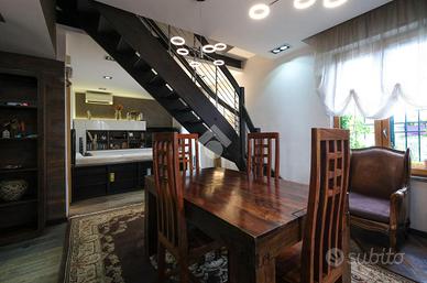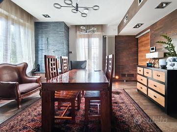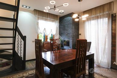 Ad Ospitaletto proponiamo intera villa bifamiliare con ampia area esterna, frutto di una ristrutturazione totale, finissima che ha elevato l'intero fabbricato ai massimi standard di lusso, comfort e sostenibilità. La villa si compone di due appartamenti distinti, entrambi caratterizzati da finiture di pregio e dotazioni tecnologiche di altissima gamma. APPARTAMENTO AL PIANO RIALZATO: varcato l'ingresso, si viene accolti da un ampio soggiorno sapientemente integrato con la cucina a vista, un ambiente conviviale completato da un comodo ripostiglio. La zona notte, accessibile tramite un disimpegno, ospita due camere da letto e un bagno finestrato con doccia. L'intero arredo, di altissima qualità, è incluso nel prezzo di vendita. APPARTAMENTO DUE DUE LIVELLI: Il secondo appartamento si estende sui due ampi livelli superiori, offrendo spazi generosi e una scenografia interna di grande impatto. L'ingresso (al piano primo) conduce a un soggiorno doppio da cui una scenografica scala diventa elemento di design e connette elegantemente al piano superiore. La zona giorno è completata da una cucina abitabile, un bagno di servizio, uno studio e un ripostiglio. Salendo, la zona notte accoglie con un alto soffitto e suggestive travi a vista, tre camere da letto, inclusa una master suite con bagno privato riservato. Questo livello vanta anche un terzo bagno e un ampio locale finestrato adibito a lavanderia. Anche questa unità viene venduta completamente arredata con mobilio di altissimo livello. Ciò che rende questa villa unica è il livello di ristrutturazione esteso all'intero fabbricato. Entrambe le unità e l'involucro edilizio beneficiano di: cappotto esterno per un elevato isolamento termico; riscaldamento a pavimento e aria condizionata canalizzata per un clima perfetto in ogni stagione; impianto fotovoltaico e pannelli solari per un notevole risparmio energetico e sostenibilità; domotica per una gestione domestica moderna e semplificata; parquet di pregio che riveste elega.