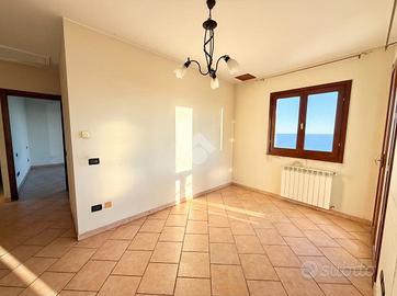 La proprietà si sviluppa su due livelli ed è ideale sia come abitazione principale che come soluzione bifamiliare. Al piano terra troviamo un ampio e luminoso soggiorno con cucina a vista e accesso diretto al terrazzo, da cui lo sguardo spazia sul mare e sulla costa fino all'orizzonte, due camere da letto e un bagno finestrato. Al piano inferiore è presente un secondo appartamento indipendente composto da soggiorno con cucina, due camere da letto, bagno e cantina, perfetto per ospitare amici e familiari o per essere destinato a locazione.