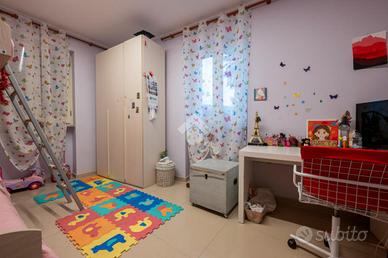 il secondo, sito al piano primo è composto dal soggiorno, cucina, tre camere da letto e un bagno finestrato e dotato di box doccia.