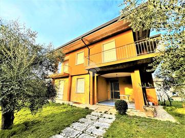 In centro a Rivoltella e a pochi passi dal lago, villa bifamigliare composta da due appartamenti indipendenti con grande locale interrato.