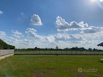 L'ampio giardino di circa 450 mq circonda la villa su tre lati, offrendo uno spazio esterno perfetto per attività all'aperto e momenti di svago.