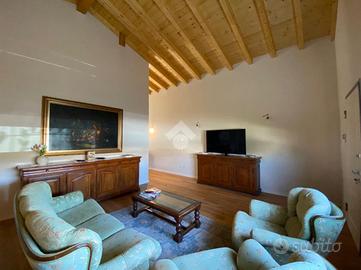 L'abitazione accoglie con una zona living luminosa, ideale per momenti di relax e convivialità, e una cucina moderna e funzionale. La zona notte dispone di quattro camere da letto, pensate per garantire comfort e privacy, con doppi servizi.