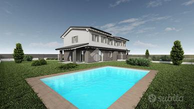 La bifamiliare, che sarà pronta nel 2026 offre una metratura di 130 mq, si sviluppa al piano terra e primo con un ampio giardino privato.
