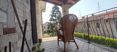 Al piano superiore, servito da atrio luminoso, si sviluppa un secondo appartamento con angolo cottura attrezzato e completo di zona giorno, camera matrimoniale con locale accessorio (ideale come studio, cabina armadio o stireria), seconda camera doppia con affaccio al balcone oltre bagno completo di vasca e doccia.