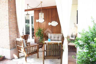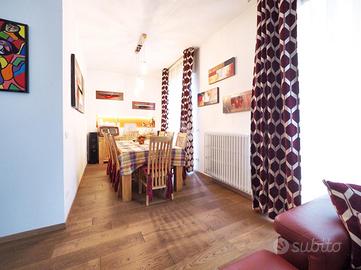 Villa bifamiliare valorizzata da giardino privato di circa 1.000 mq. La soluzione sorge in zona residenziale del paese. Internamente presenta due ampi trilocali così composti: - al piano terra ci accoglie una luminoza zona giorno con comoda cucina abitabile e accesso al riservato portico; la zona notte ospita le due camere da letto, di cui una con cabina armadio, oltre a servizi, spaziosa cantina e locale tecnico; - il piano primo ospita una caratteristica zona giorno con moderni accorgimenti e cucina abitabile oltre a terrazzo. Nella zona notte sono presenti la camera matrimoniale con servizi privati, cameretta e bagno. L'immobile è stato recentemente ristrutturato a nuovo con materiale di pregio. L'ampia area esterna privata, in parte edificabile, dona riservatezza all'edificio. Maggiori informazioni presso il nostro ufficio.