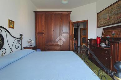 Salendo al piano primo, si accede al secondo appartamento dove l'ingresso si apre su un elegante soggiorno con balconi, seguito da una zona pranzo anch'essa dotata di camino e una pratica retrocucina. Un ambiente studio e due camere da letto, di cui una con bagno privato, completano la disposizione. Il bagno principale con vasca offre un ulteriore tocco di comfort.
