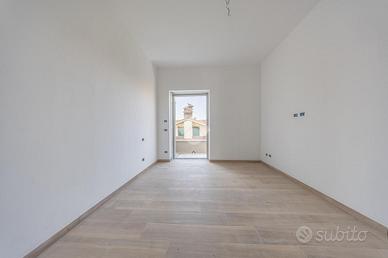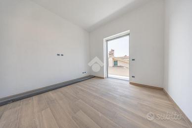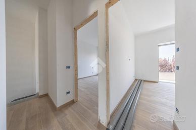 Percorrendo la raffinata scala in cristallo con segna passo, il piano superiore, caratterizzato interamente dalla zona notte, comprende tre spaziose camere da letto, una delle quali con un terrazzo, e ben due bagni per garantire il massimo comfort a tutta la famiglia.
