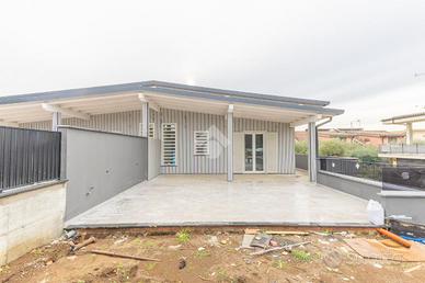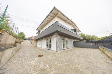 Esternamente il villino è realizzato con un ampio spazio interamente privato, contornato in parte verde ed in parte pavimentato che consente di parcheggiare comodamente due o più auto.
