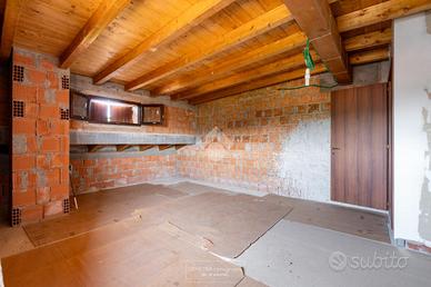 L'unità al piano superiore, servita da scale in granito, è composta da soggiorno, balcone, cucina abitabile con sfogo in un ampio terrazzo in parte con coperto in legno a vista, in parte piastrellato, disimpegno, 2 camere da letto, 2 bagni, con sovrastanti 4 locali ad uso soffitta, attualmente al grezzo e con copertura in legno a vista.