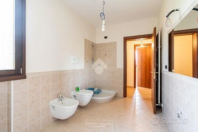 La villa, che presenta un bel paramento in pietravista e un elegante disegno architettonico, è stata edificata con grande cura e con materiali di prima scelta 18 anni fa, ma solo l'unità al piano terra è stata (ed è tuttora) abitata. Essa si compone di ampio porticato su 2 lati, soggiorno, cucina abitabile, disimpegno, 2 camere da letto, 2 bagni (uno attrezzato a lavanderia).