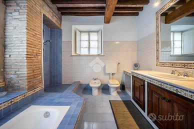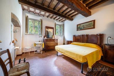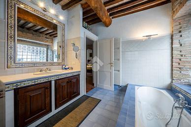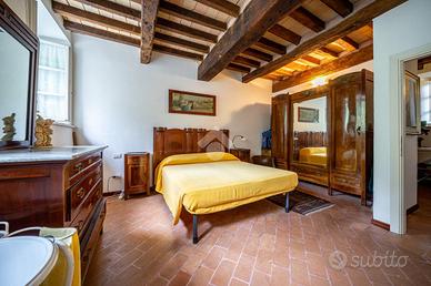 proseguendo nella zona notte tramite il disimpegno raggiungiamo le due camere da letto matrimoniali entrambe arricchite dal solaio con travi in legno a vista e il bagno completo di vasca e doccia.