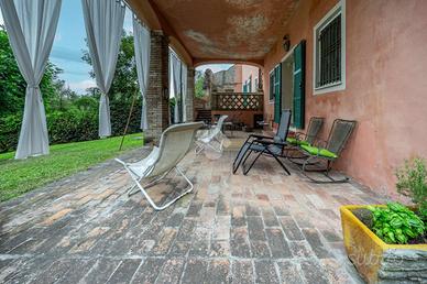 La proprietà avente due accessi carrai e circondata da circa 10.000 metri quadrati di terreno, suddiviso tra giardino e una parte di bosco, ed è stata realizzata intorno alla fine del '800.