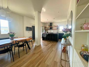 A Leverano, nel cuore di una zona centrale e ben servita, proponiamo in vendita un elegante appartamento al primo piano, completamente e finemente ristrutturato, pronto ad accogliere chi desidera vivere in una casa moderna e curata in ogni dettaglio. Varcando l'ingresso si viene accolti da una luminosa zona giorno con cucina open space su misura, perfettamente organizzata e affacciata su un ampio terrazzino a livello, ideale per trascorrere momenti di relax o convivialità con amici e familiari. Il soggiorno, anch'esso luminoso, gode dell'affaccio su un grazioso balconcino che dona ulteriore ariosità agli ambienti. Un comodo disimpegno conduce al primo bagno con doccia e a una pratica stanza da adibire a lavanderia o ripostiglio, pensata per ottimizzare ogni spazio della casa. Salendo al piano superiore si accede alla zona notte, composta da tre camere da letto ampie e ben illuminate, una delle quali con affaccio sul balcone. La camera padronale conquista per la presenza di una spaziosa cabina armadio e di un'area riservata che può essere trasformata in un elegante angolo make-up o studio privato. Completa la zona notte un secondo bagno di generose dimensioni, raffinato e luminoso, dotato sia di una grande doccia che di una vasca, per offrire comfort e benessere in ogni momento della giornata. A completare la proprietà vi è l'area solare di esclusiva pertinenza, uno spazio prezioso e versatile dove poter ricreare un ambiente rilassante o un solarium privato. Questa soluzione rappresenta un perfetto equilibrio tra funzionalità, eleganza e comfort, ideale per chi cerca una casa pronta da vivere nel centro di Leverano, senza rinunciare a indipendenza e stile.