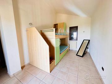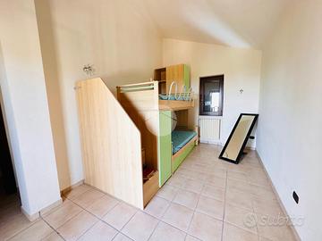Al primo piano di sviluppa la zona notte, composta di camera da letto, cameretta e bagno di servizio.
