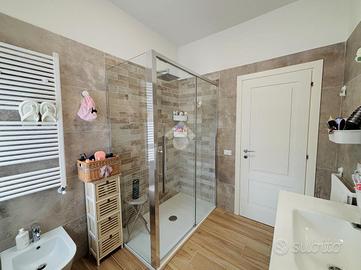 Proponiamo in vendita una bifamiliare edificata nel 1981 e completamente ristrutturata nel 2023, caratterizzata da spazi ampi e ben distribuiti, con ingressi e impianti indipendenti per ciascuna unità abitativa. Al piano terra si sviluppa un appartamento composto da soggiorno e cucina separati, entrambi con accesso diretto al rispettivo balcone. La zona notte comprende tre camere da letto, di cui una matrimoniale e una camera di dimensioni medie, entrambe con accesso al balcone, oltre a una camerina. Completa il piano un bagno finestrato. La proprietà è inoltre arricchita da un garage e da un giardino frontale esclusivo. Al primo piano troviamo il secondo appartamento, anch'esso con soggiorno e cucina separati, entrambi dotati di accesso al proprio balcone. La zona notte è composta da due camere matrimoniali, entrambe con accesso al balcone, una camerina, un bagno finestrato e un comodo ripostiglio adibito a zona lavanderia. L'immobile dispone inoltre di una taverna con soggiorno e cucina, un ulteriore bagno finestrato,un piazzale di proprietà con possibilità di parcheggio e un giardino posteriore ideale come spazio conviviale o area relax. La ristrutturazione, eseguita integralmente nel 2023, ha interessato impianti, pavimentazioni, bagni, infissi interni ed esterni, tetto, facciate con cappotto termico e terrazzi. L'immobile è dotato di impianto fotovoltaico, porte blindate, avvolgibili automatici e impianto di allarme presente in entrambe le abitazioni e nel garage. Ogni unità è provvista di riscaldamento autonomo. Soluzione ideale per due nuclei familiari o per chi desidera un'abitazione di ampia metratura con spazi indipendenti e finiture moderne.