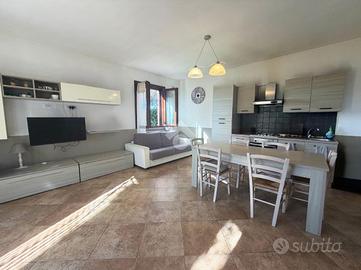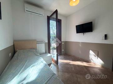 PESCIA ROMANA - STRADA DEL TERRENO Porzione di bifamiliare con giardino privato e solarium a pochi passi dal mare In una zona tranquilla e riservata, a pochi minuti dal mare, proponiamo in vendita una splendida porzione di bifamiliare completamente ristrutturata nel 2017, in ottimo stato di manutenzione e pronta per essere abitata. L'immobile si sviluppa interamente su un unico livello e si compone di: *Ampio e luminoso soggiorno con angolo cottura, valorizzato da grandi finestre che donano luce naturale e una piacevole sensazione di apertura; *Camera matrimoniale con accesso diretto al giardino privato; *Cameretta ideale per ospiti o bambini; *Bagno finestrato con doccia. L'ingresso è indipendente e conduce al giardino esclusivo, un'oasi di tranquillità con area relax, zona barbecue immersa tra gli ulivi e spazi perfetti per pranzi e cene all'aperto. Punto di forza della proprietà è l'ampia terrazza/solarium accessibile tramite scala esterna: uno spazio vivibile e panoramico, ideale per godersi il sole e momenti di relax in totale privacy. La casa rappresenta la soluzione ideale sia come abitazione principale che come residenza estiva, grazie alla vicinanza al mare (solo 3,5 km) e al contesto verde e sereno in cui si inserisce. DATI TECNICI : Infissi doppio vetro legno, fognatura IMUF, acqua diretta.