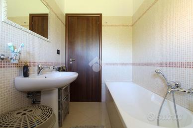 L'immobile include un ampio locale autorimessa di 49 mq e un posto auto. Il giardino privato è arricchito da una tettoia in legno lamellare, ideale per momenti di relax all'aperto.