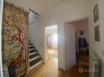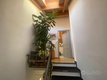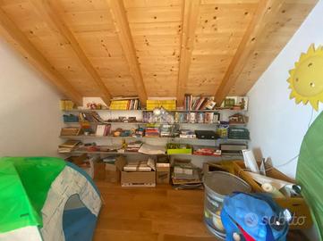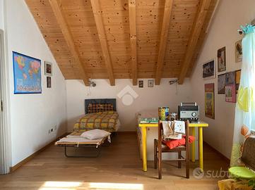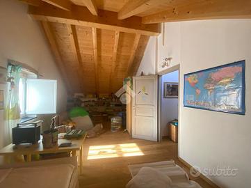 l'appartamento al primo piano si sviluppa su due livelli e include la mansarda con travi a vista, ideale per creare uno spazio abitativo aggiuntivo o un'accogliente area relax.
