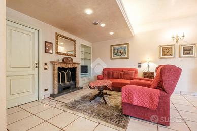 Immersi nel verde, all'interno di una prestigiosa tenuta privata caratterizzata da tranquillità e totale riservatezza, proponiamo in vendita una villa bifamiliare suddivisa in due appartamenti quadrilocali completamente indipendenti. Il quadrilocale al piano terra è impreziosito da un portico esclusivo di circa 80 mq, con accesso diretto alla piscina, uno spazio esterno di grande valore. Il secondo quadrilocale, situato al piano superiore, gode invece di un terrazzo vivibile, riservato e ben esposto. Entrambe le abitazioni si sviluppano con una zona giorno luminosa, cucina abitabile, tre camere da letto e due bagni: uno padronale collegato alla camera matrimoniale e uno di servizio, entrambi dotati di doccia e vasca. È inoltre presente una zona lavanderia separata, funzionale e ben organizzata. La proprietà è inserita in un parco privato completamente recintato, curato e piantumato, arricchito da una piscina interrata recentemente ristrutturata, oggi dotata di impianto di sanificazione al sale e area solarium, perfettamente integrata nel verde circostante. Completano la proprietà 3 box. Questa soluzione è ideale per due famiglie che cercano spazi generosi in un contesto eslusivo, senza rinunciare alla comodità dei servizi nelle vicinanze.