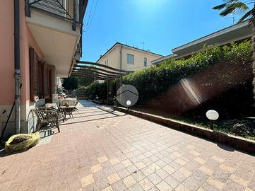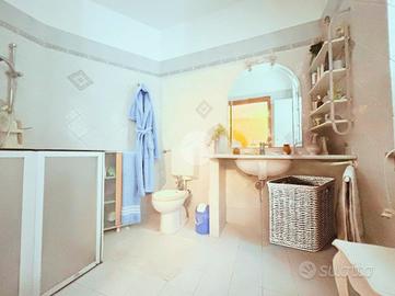 Il primo appartamento, al piano terra, accoglie con una luminosa zona giorno open space dove cucina e sala si fondono in un ambiente armonioso, arricchito dall'accesso diretto al giardino privato, un angolo perfetto per rilassarsi e trascorrere momenti speciali all'aperto. La zona notte, pensata per il massimo relax, offre due camere da letto e due bagni. L'ascensore privato diventa un tocco di esclusività, collegando con eleganza il piano superiore, dove si trovano una terza camera, un bagno, un ripostiglio e un confortevole soggiorno, fino alla taverna al piano interrato e al box auto. Riscaldamento autonomo e aria condizionata completano questa abitazione, rendendola accogliente tutto l'anno.