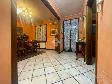 Al piano rialzato troviamo il primo appartamento, un trilocale ben tenuto e curato nei minimi dettagli di circa 100 mq diviso alla seguente maniera:
