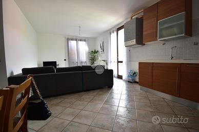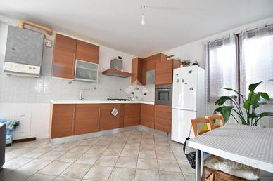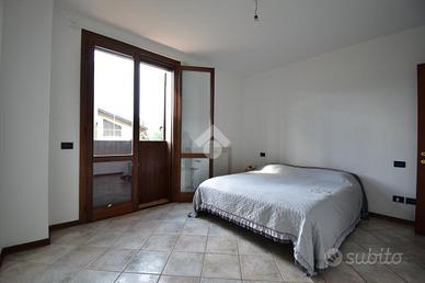 L'immobile si apre su un ampio corridoio che ci conduce a tutti gli ambienti; sulla sinistra troviamo un'ampia zona open space con angolo cottura a vista, tramite alle due porte finestre presenti nella zona giorno, accediamo al giardino e al terrazzo.