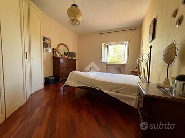 Nelle immediate vicinanze del Poggetto, in zona tranquilla e residenziale, proponiamo in vendita porzione di villa bifamiliare al piano terra. L'immobile con ingresso e giardino indipendente, gode di un ampio patio antistante facente parte della zona giorno. Alla zona notte si accede solo da qualche scalino, ed è composta da 3 camere e bagno con vasca. Tavernetta al piano seminterrato con ingresso dall'inteno della casa. Ampio giardino di circa 400 mq.