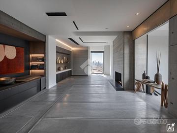 Il primo piano, accessibile tramite una scalinata, ospita l'appartamento allo stato grezzo di 170 mq circa, progettato per accogliere un'ampia zona giorno, tre camere da letto, doppi servizi e quattro balconi.