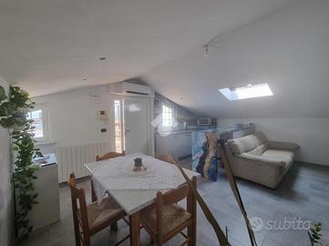 Al secondo ed ultimo piano del fabbricato si trova l'attico, composto da un soggiorno con angolo cottura, un disimpegno, due camere da letto ed un terrazzo abitabile di circa 50 mq. Completo di mobilia.